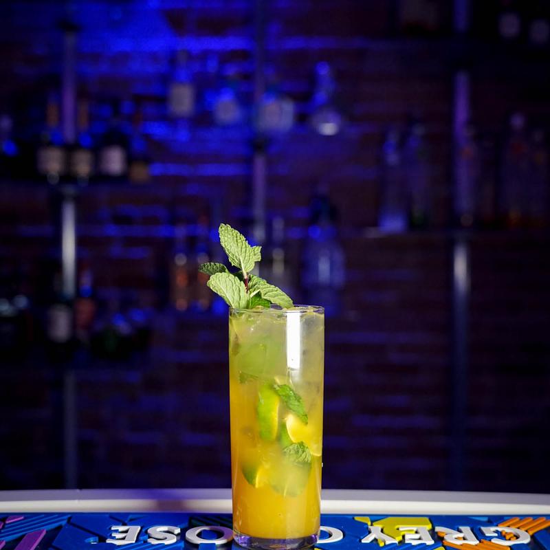 Rum, muddled fresh mint, simple syrup, topped with soda water.Flavors: Classic, Mango, Passion Fruit, Blueberry, Watermelon, and Pineapple.
